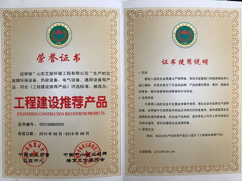 工程建設(shè)推薦產(chǎn)品證書